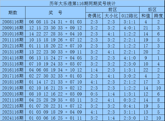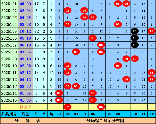 后分袂析:在第116期历史同时开奖中,和值大小为10:7,跨度奇偶比为7:10,本期后区防备两码02和06。