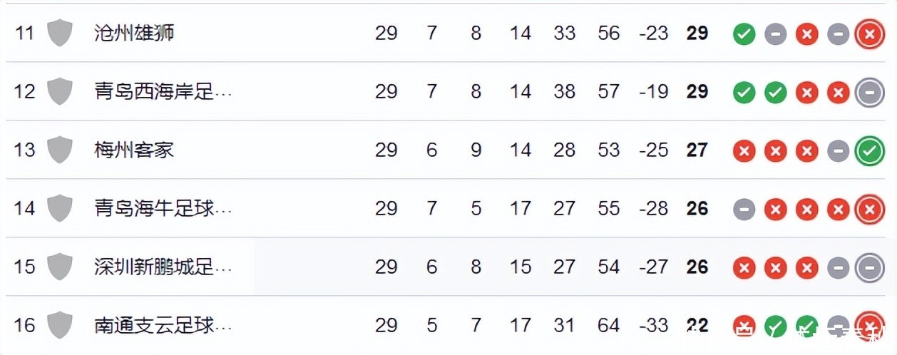 另外值得一提的是,要是海牛队在主场打败沧州雄狮,而深圳新鹏城也在主场赢球,那么就将出现海牛、深圳新鹏城和沧州雄狮同积29分的情况,球队之间的相互战绩和净胜球就会成为决定保级的要津要素。